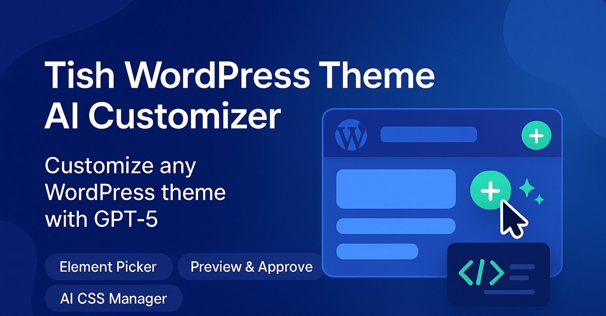 Tish WordPress Theme AI Customizer is a WordPress plugin that turns plain English into production-ready CSS using GPT-5 and the OpenAI API. It’s built for site owners, agencies, and theme developers who want fast, accurate visual changes without editing theme files or creating child themes. Use the visual Element Picker …
